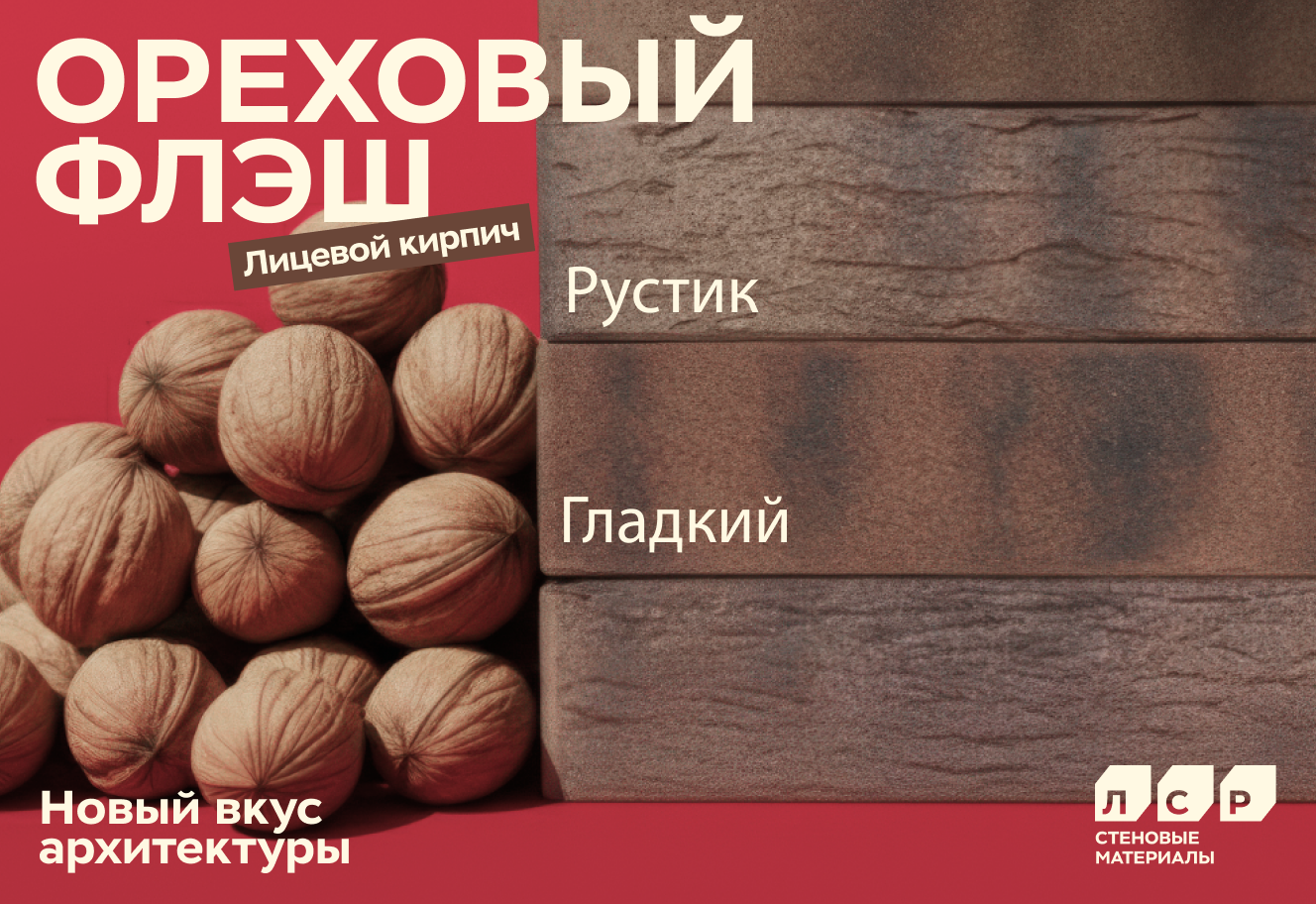 Компания ЛСР представляет новый лицевой пустотелый кирпич «Ореховый флэш» — новинку, созданную для эффектных и выразительных фасадов.
